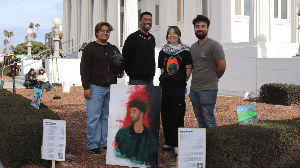 On Saturday December 14th, 2024 volunteers, artists, and organizers gathered together at the Carnegie Museum in downtown Oxnard, CA for a Mini Nature Reserve installation. Medo’s Meadow honors the late Mohammad “Medo” Halimy, a guerrilla gardener based in the Gaza Strip known for his “tent life” vlogs. On August 26, 2024, he was hit by shrapnel from an Israeli bomb in the city of Khan Younis and died. His videos provided an intimate look into the everyday life of his community during the ongoing genocide in Gaza.